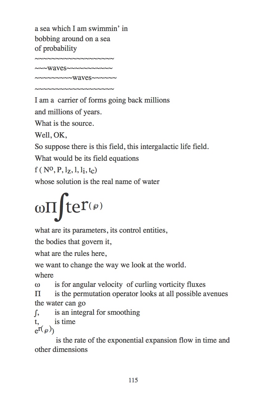 The image shows water eing through of as a concatenation of mathematical symbosl bespeaking actions that end up being the many things water does for us here. It shows water as a solution of the Green Bank Formula a function describing the emergence of life.