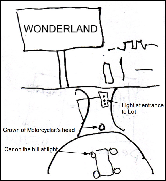 I’m at the intersection of Fredricksburg Rd. and Hillcrest at that light at the entrance of Wonderland mall. A mall that used to be the last stop on my bus ride home from Central Catholic High School for Boys in downtown San Antonio. It is a military school. I’d be in a khaki army uniform. I’d walk about a mile home in the Texas heat with a chubby from the chafing. It would go on and on. I don’t recall the fantasy although I wouldn’t be surprised if Candi Ramirez was involved. I used to worry that people in cars passing by would see the tent proceeding. But anyway that’s not part of the dream. In the dream I am in a car, behind a guy on a motorcycle, I can just barely see the crown of his head. I am on the downside of a steep hill and can’t really see beyond the dashboard, and it is very foggy. I sense the light change and I blindly plow into the intersection not seeing anything. And in a burst of diffuse fogy wet light, I change sex! On the other side into Wonderland, I am female. And then I am surrounded by all these men looking at me.