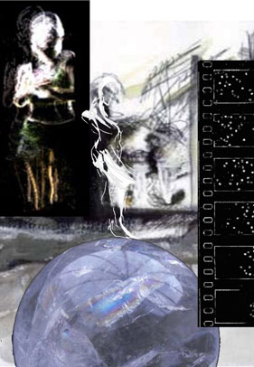 The Character of Walker develops in the book. In the first image at the right we see figurative abstraction, and the riemann sphere as crystal ball, and successive frames of statistical particles being moved by maxwells demon.